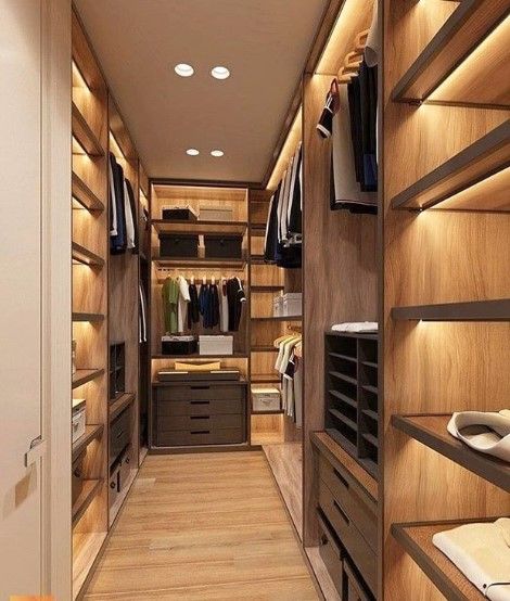 Uma dica além de utilizar LEDs dentro dos armários, cabideiros iluminados são uma ótima opção para iluminar o ambiente, sem precisar acender as luzes do quarto ou do closet.