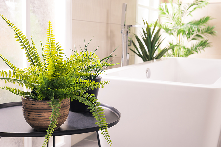 As mais adequadas para os banheiros são as plantas tropicais, que gostam de um clima quente e úmido. O Lírio da paz, eucalipto, espada de São Jorge, avenca e samambaia são algumas opções.