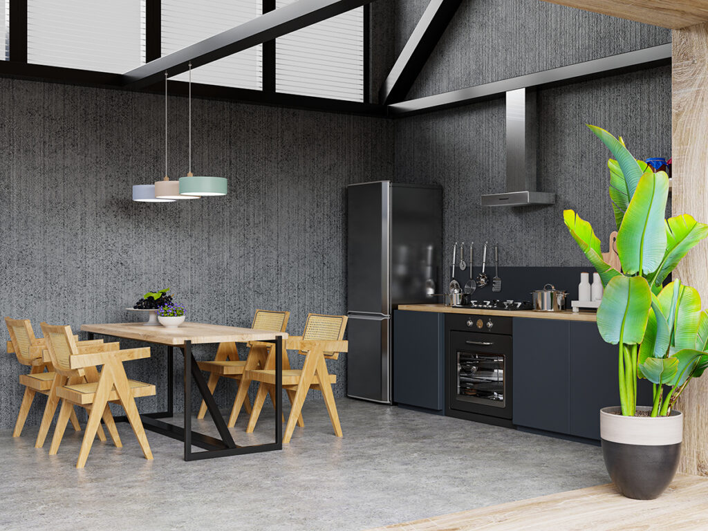 Em alta no momento, o estilo industrial é caracterizado por sua aparência inacabada, tubulação exposta, uso de metais, concreto e vigas.