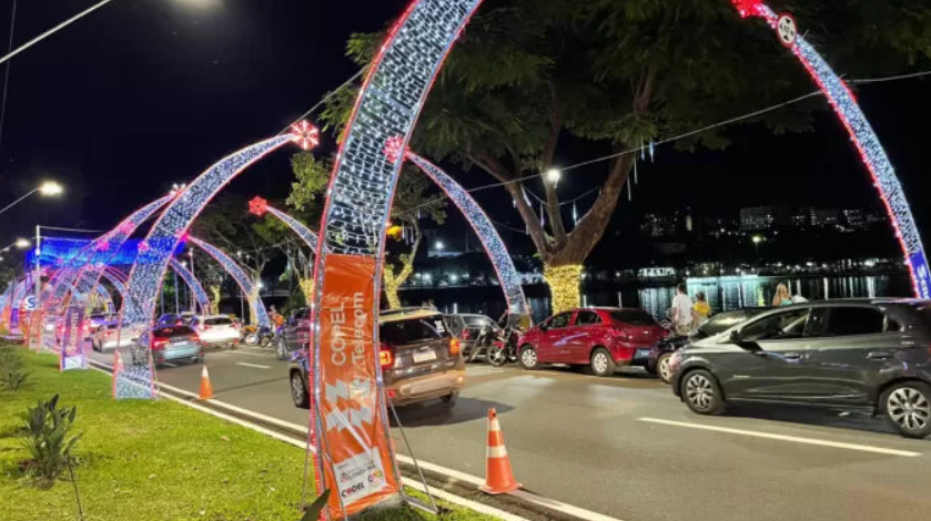 Um túnel de luzes está sendo instalado em frente ao Lago Igapó II.
